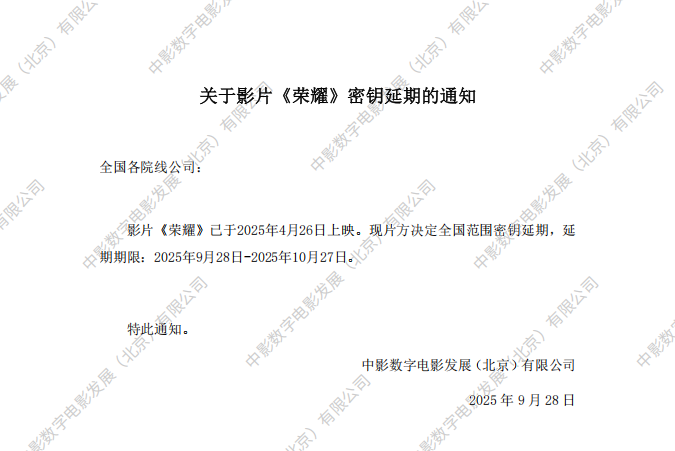 《荣耀》密钥延期的通知