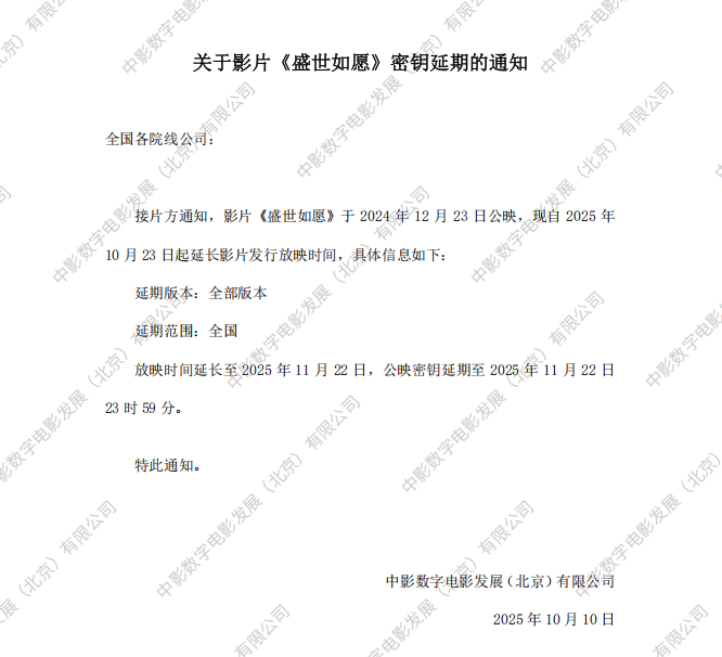 《盛世如愿》第六次密钥延期的通知