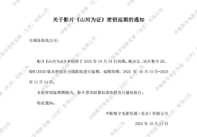 《山河为证》第三次密钥延期的通知