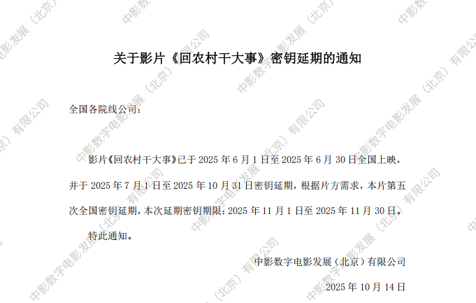 《回农村干大事》第八次全国密钥延期的通知