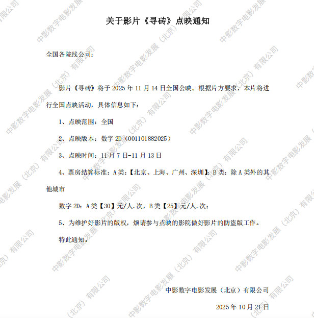 《熊猫计划之部落奇遇记》调整票房结算标准的通知
