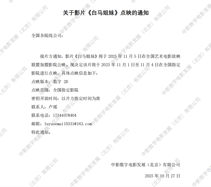 《白马姐妹》发行通知