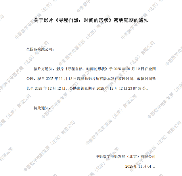 关于影片《寻秘自然:时间的形状》3次密钥延期的通知