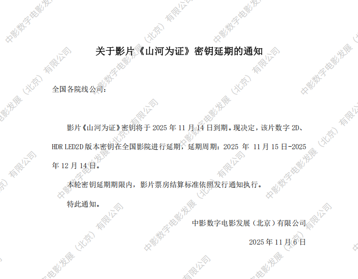 《山河为证》第二次密钥延期的通知