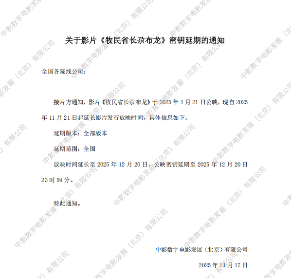 《牧民省长尕布龙》第十一次密钥延期的通知