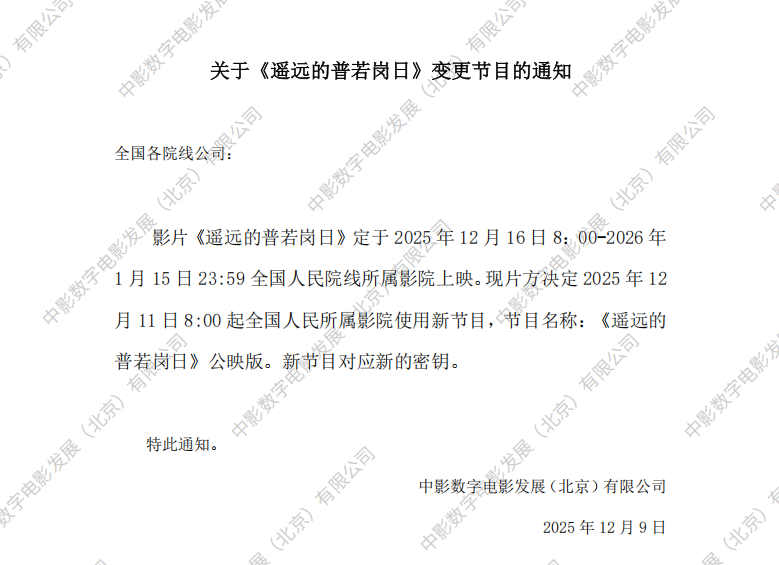 人民院线影片《遥远的普若岗日》 排片要求