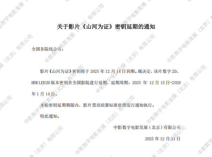 《山河为证》第二次密钥延期的通知