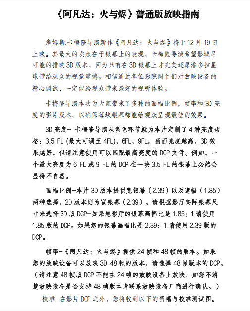 《阿凡达:火与烬》全国点映的通知