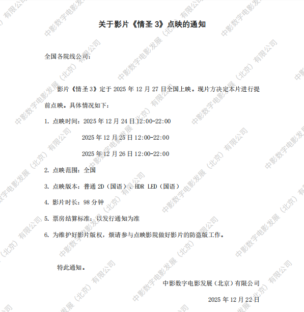 《情圣3》点映的通知