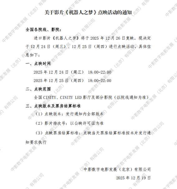 发行通知 » 《机器人之梦(复映)》点映的通知