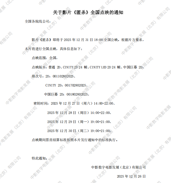 《匿杀》提档的通知