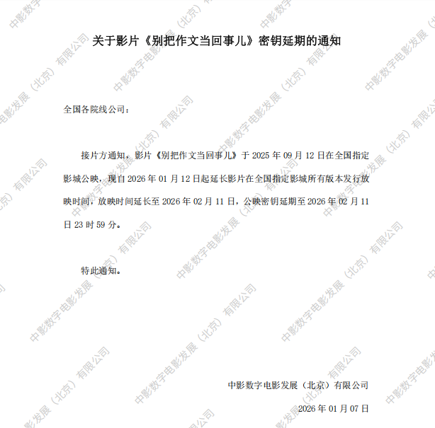 关于影片《别把作文当回事儿》密钥延期的通知