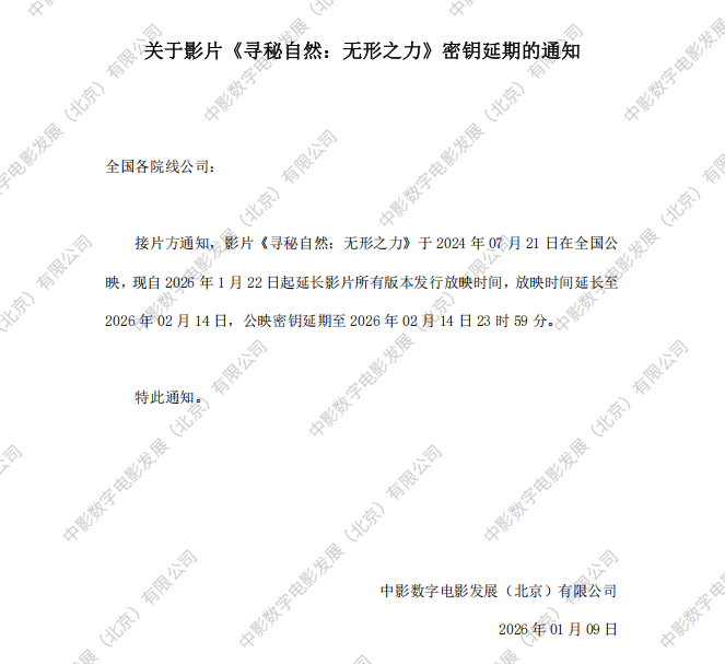 《寻秘自然:无形之力》调整票房结算标准的通知