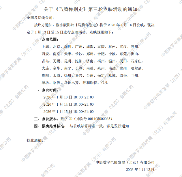 《马腾你别走》第二轮点映的通知
