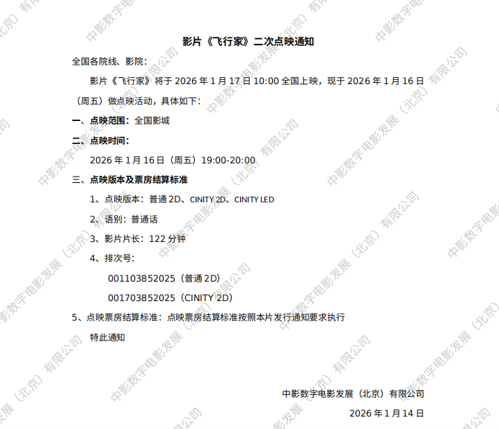《飞行家》发行通知