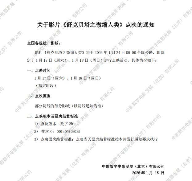 《舒克贝塔之微缩人类》发行通知