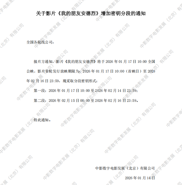 《我的朋友安德烈》密钥延期的通知