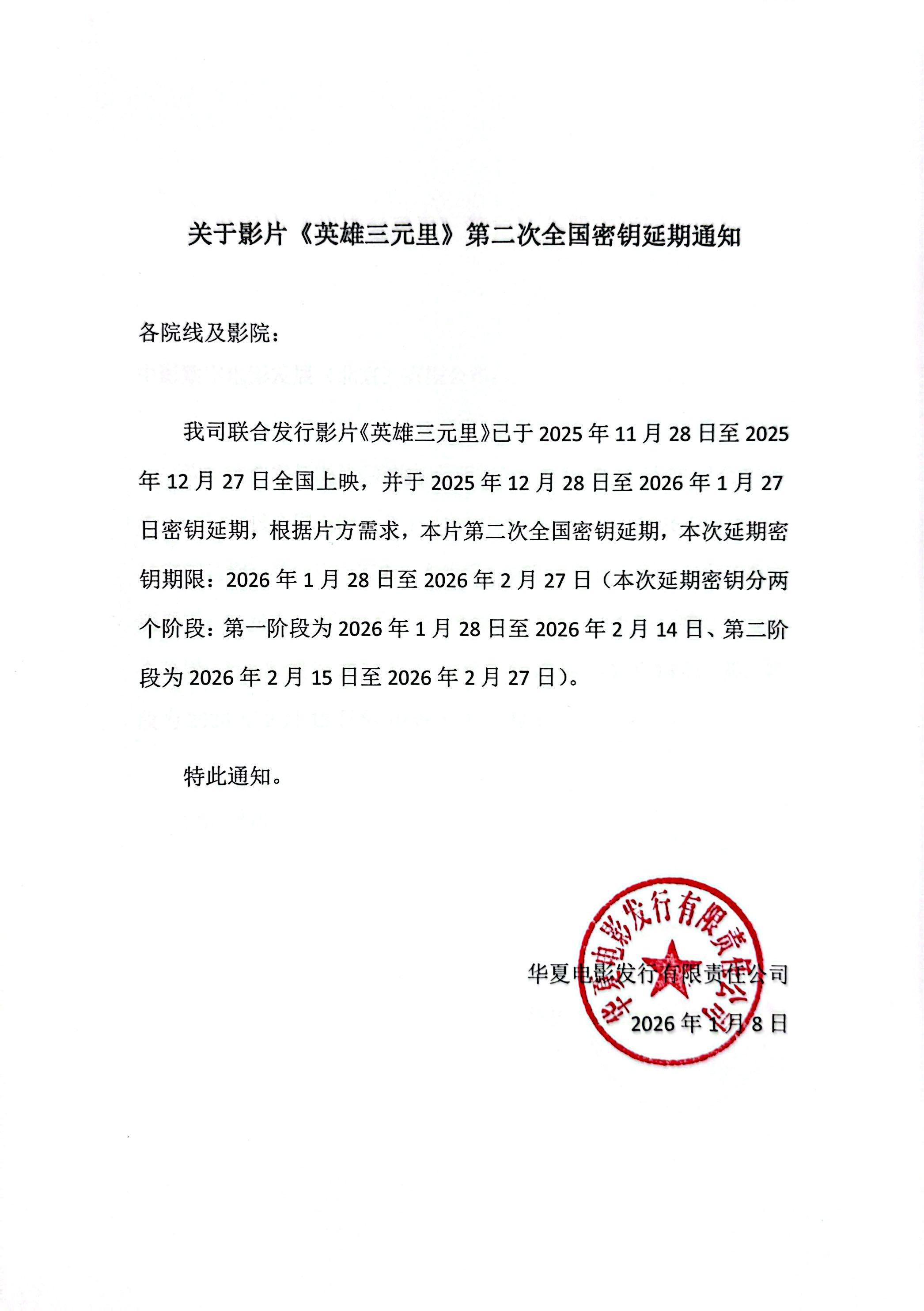 《英雄三元里》增加放映版本的通知