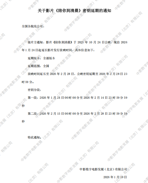 《陪你到清晨》第二次密钥延期的通知