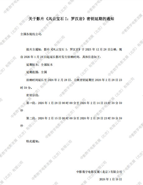 《亭亭凤凰台》全国密钥延期的通知