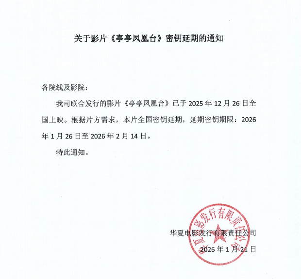 《亭亭凤凰台》全国点映的通知