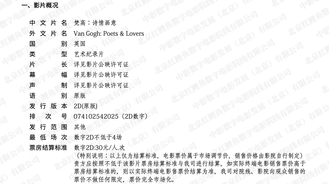 发行通知 » 《梵高:诗情画意》发行通知(延期)