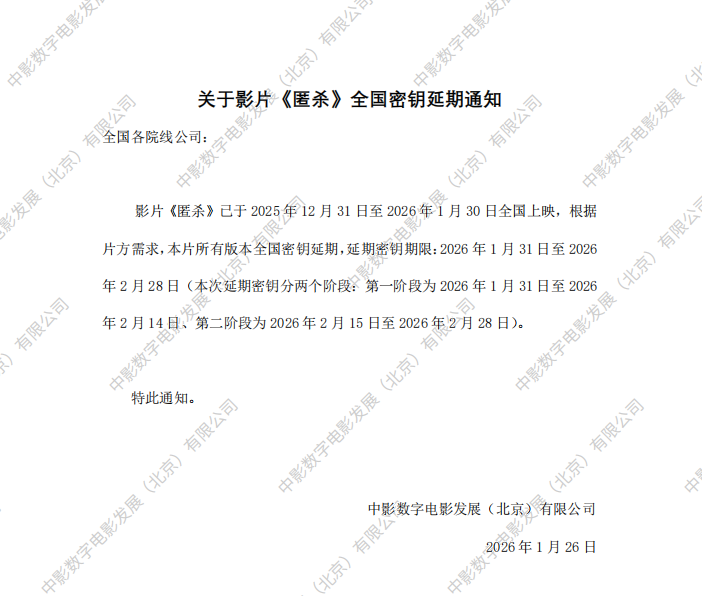 发行通知 » 《匿杀》全国密钥延期的通知