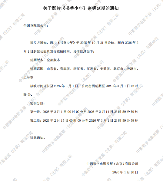 发行通知 » 《书香少年》第三次密钥延期的通知