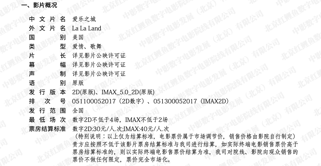 《爱乐之城》数字2D原版的放映说明