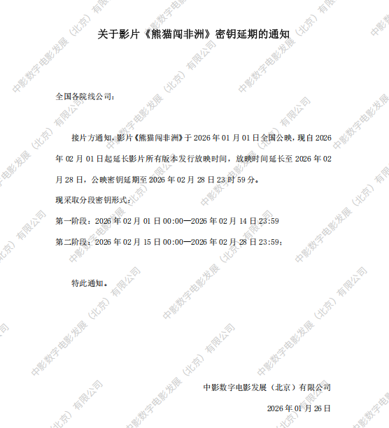 《熊猫计划之部落奇遇记》调整票房结算标准的通知