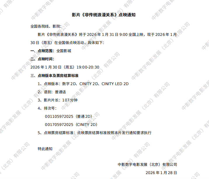 发行通知 » 《非传统浪漫关系》点映的通知