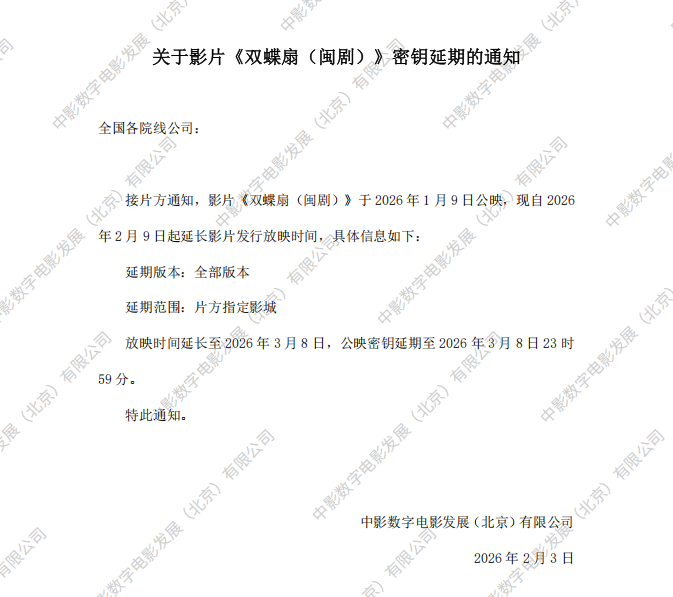 发行通知 » 《双蝶扇(闽剧)》密钥延期的通知