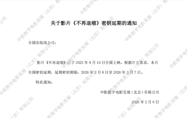 《不再退缩》密钥延期的通知
