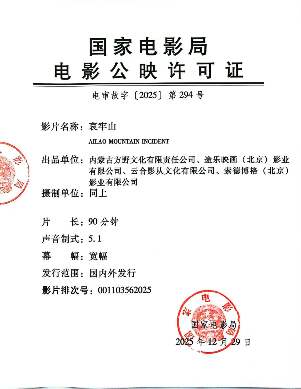 发行通知 » 《哀牢山》发行通知