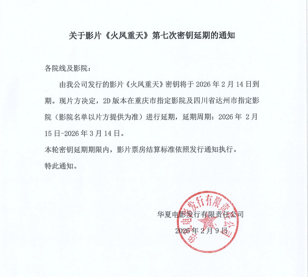 《火凤重天》调整上映范围及第六次密钥延期的通知
