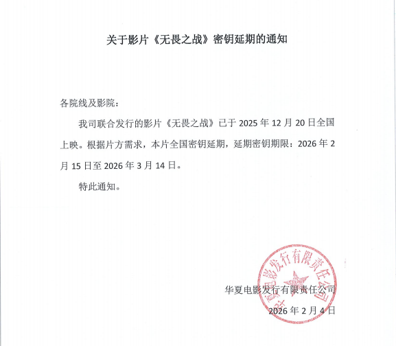 《无畏之战》改档的通知