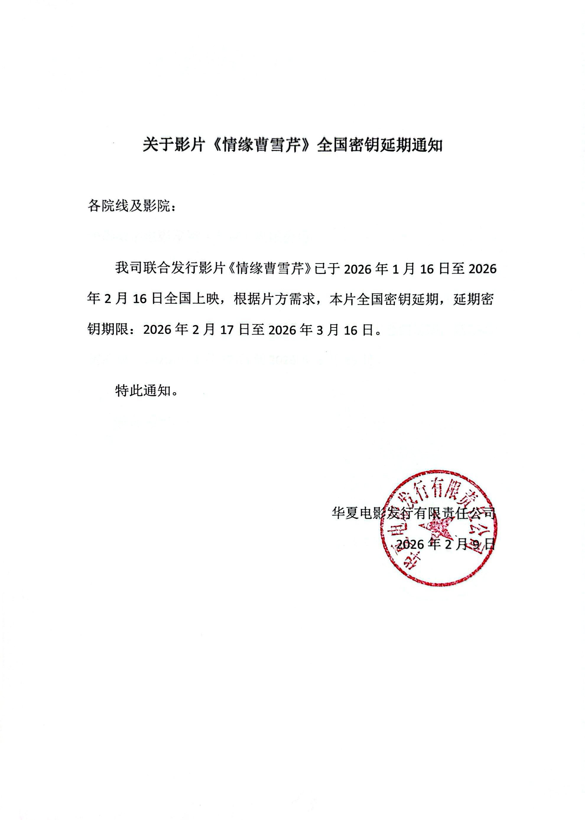 《情缘曹雪芹》发行通知