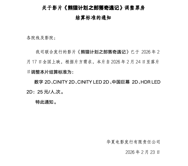 发行通知 » 《熊猫计划之部落奇遇记》调整票房结算标准的通知