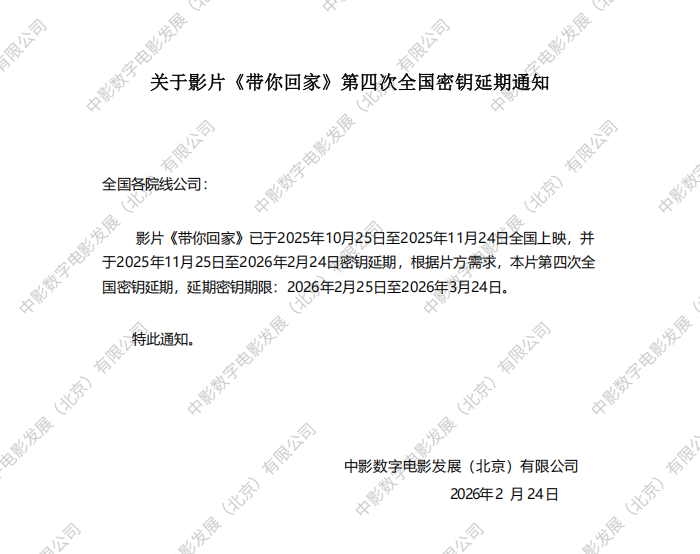 发行通知 » 《带你回家》第四次密钥延期的通知