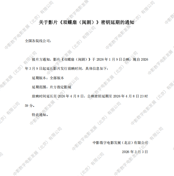发行通知 » 《双蝶扇(闽剧)》第二次密钥延期的通知