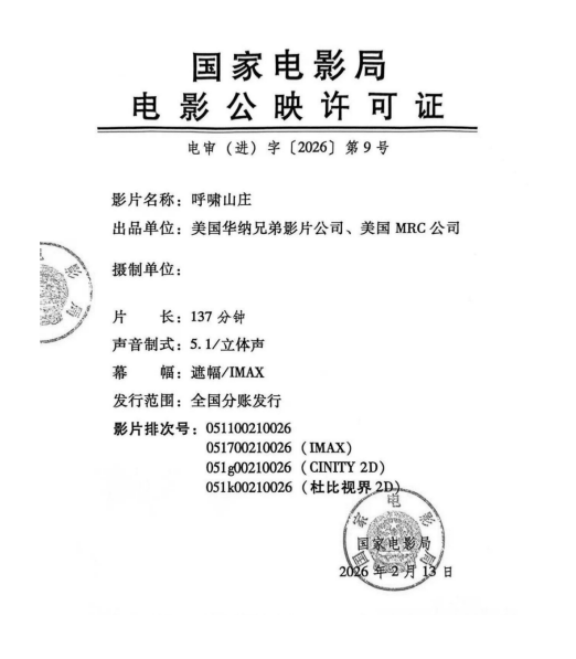 排 次 号:详见影片公映许可证
