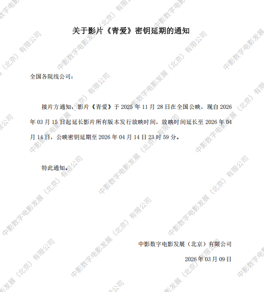 发行通知 » 关于影片《青爱》4次密钥延期的通知