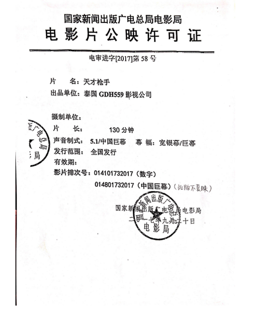 根据贵我双方已经签订的《数字版影片分账发行放映合同》(以下简称“总发行合同”)和排片计划,我公司即将在指定影城数字影院发行影片《天才枪手》,现就该影片的发行和放映工作具体通知(以下简称“本通知”)如下: