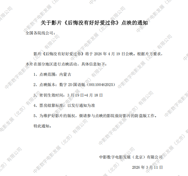 发行通知 » 《后悔没好好爱过你》点映的通知