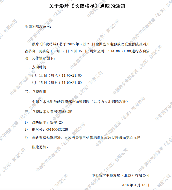 《长夜将尽》发行通知
