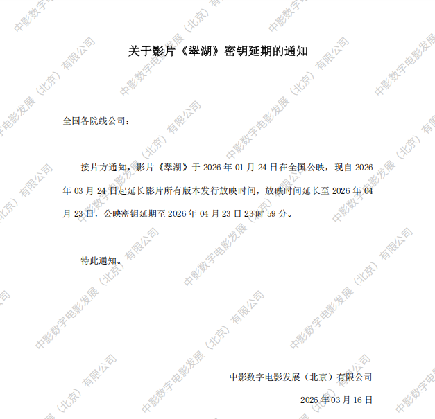 发行通知 » 《翠湖》第二次密钥延期的通知