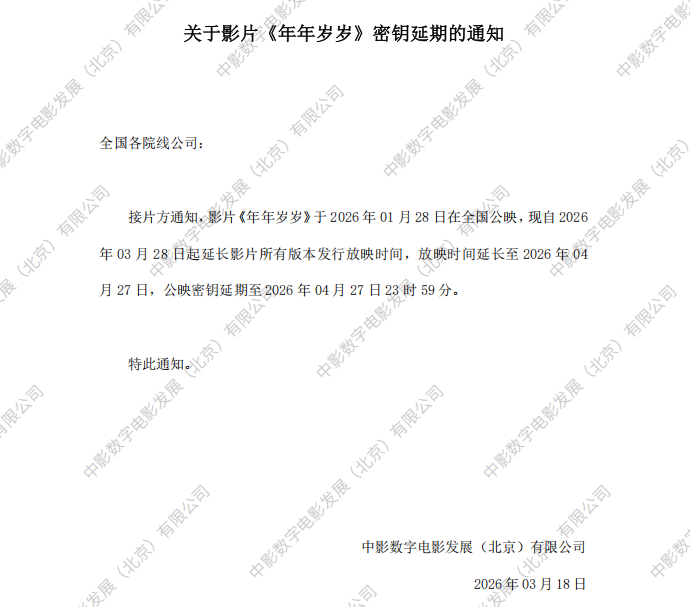 发行通知 » 《年年岁岁》第二次密钥延期的通知