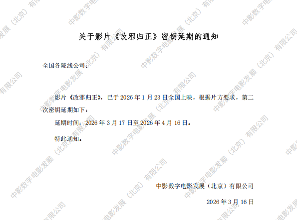 发行通知 » 《改邪归正》第二次密钥延期的通知