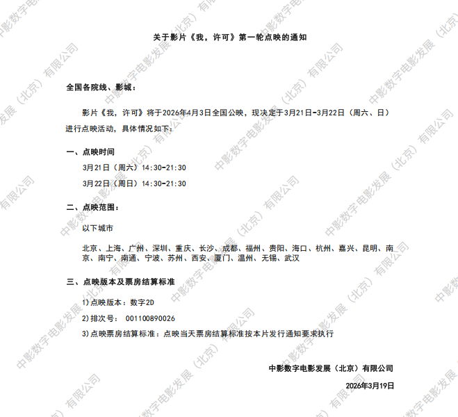 《我,许可》发行通知