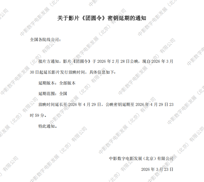 《团圆令》发行通知